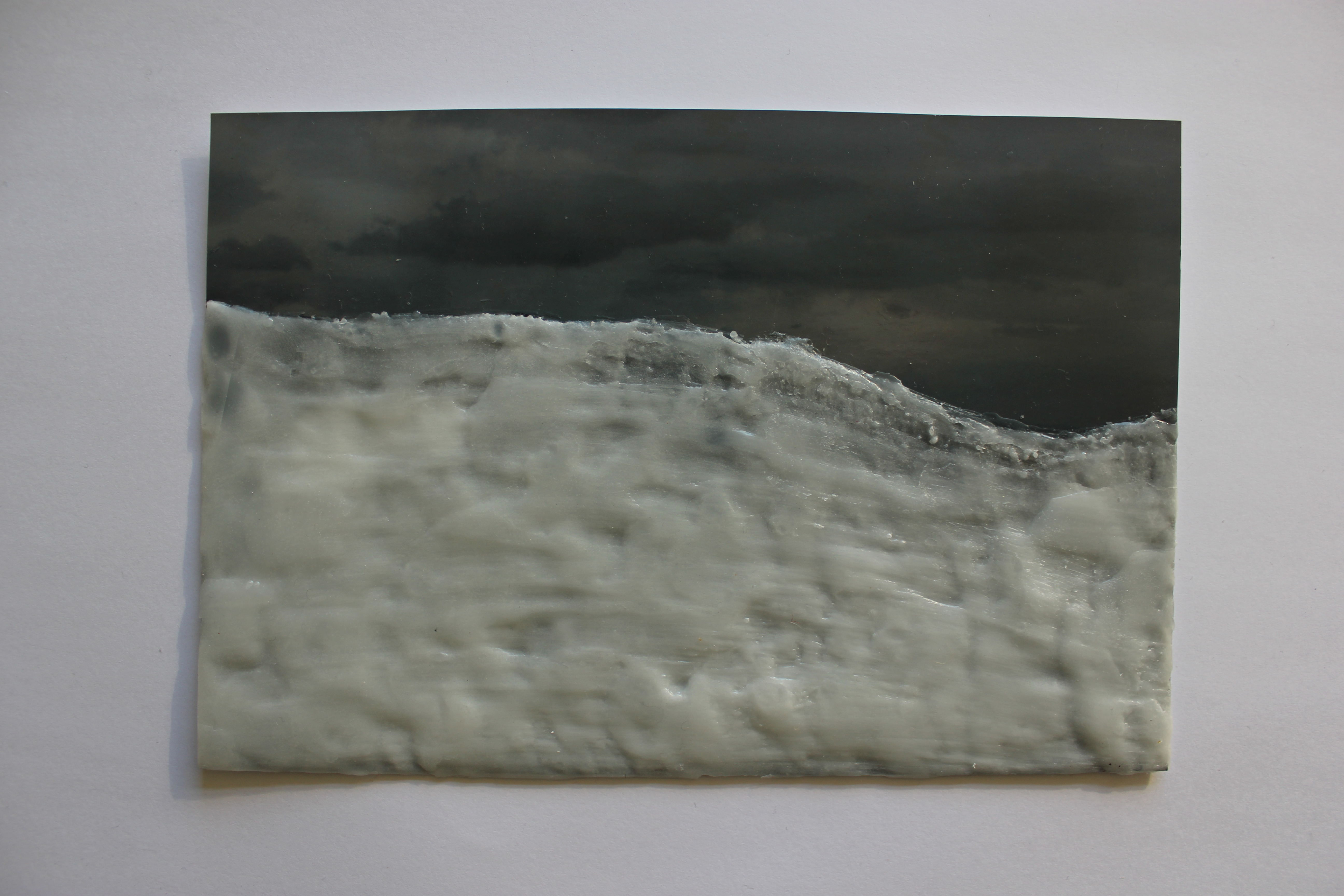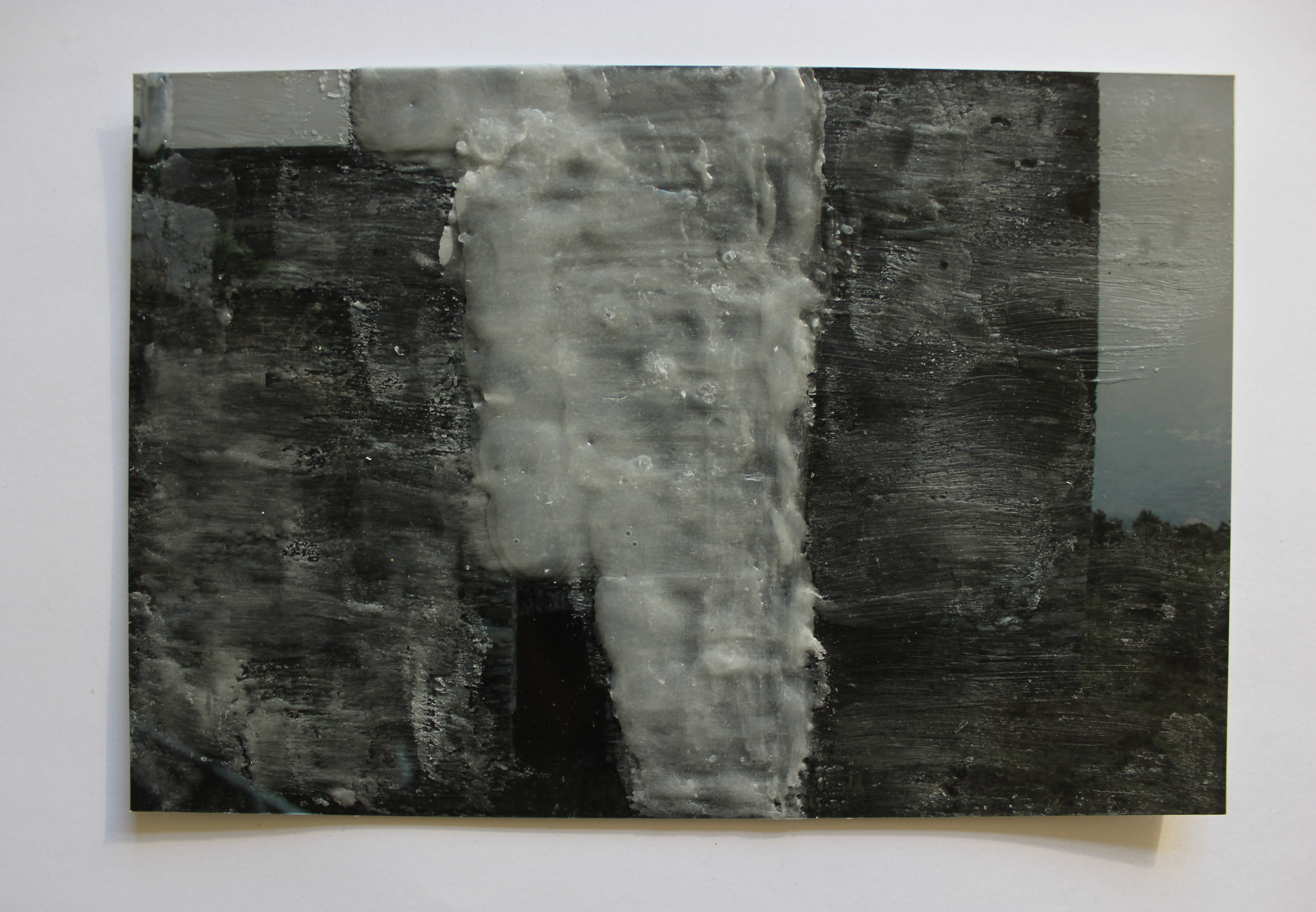 Photograph (and wax) collages (+/- 15×15 cm top three, 18x13cm bottom two)